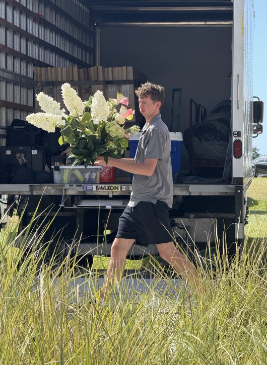 During his time at Botanica, Mason helped with everything from designing arrangements and prepping installations to learning the logistical and operational strategies behind successful large-scale events. He observed how communication and collaboration kept the fast-paced production floor running smoothly—something he plans to bring back to his own shop in Milton.